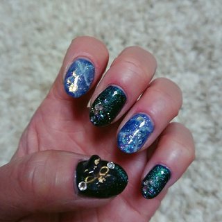 親指だけ黒 キラキララインストーンネイル ステキネイル Misako Nail